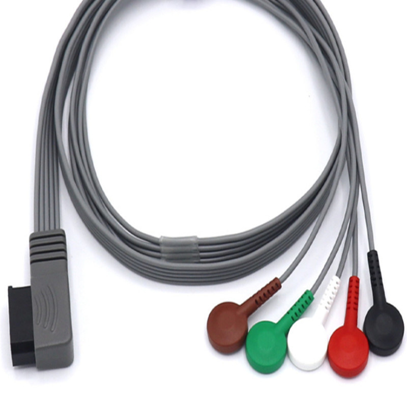 * Kabel EKG PH Holter Recorder, 5 przewodów, AHA, Snap, Kompatybilny, 2,5m