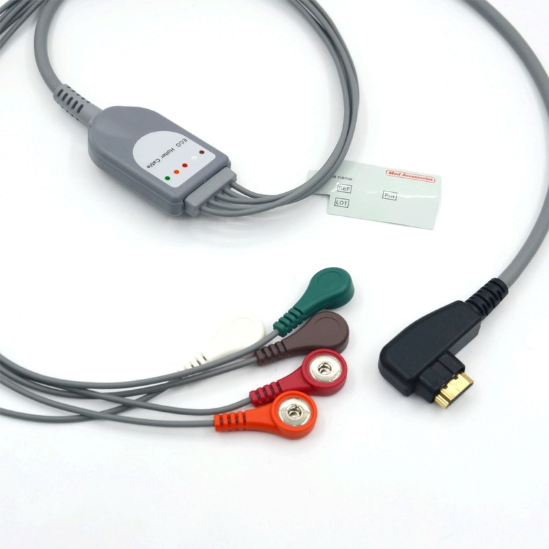 Kabel EKG i akcesoria: Kable EKG i akcesoria są używane do elektrokardiografii, zapewniając połączenie między elektrodami EKG a maszyną lub monitorem EKG.