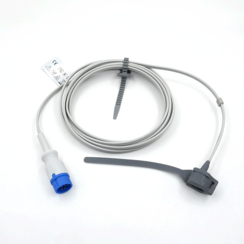 Kabel czujnika Spo2 jest wykonany z materiału TPU, zapewniającego trwałość i elastyczność.Łatwo je również oczyszczać i utrzymywać, co czyni go idealnym dla sprzętu medycznego.
