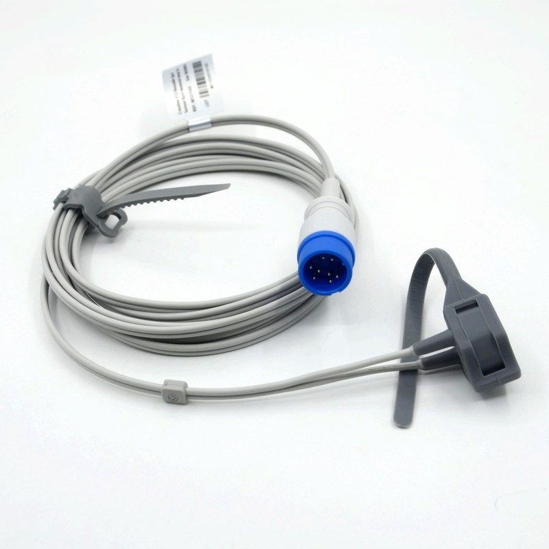 Kabel czujnika Spo2 to urządzenie medyczne służące do pomiaru poziomu nasycenia tlenem we krwi pacjenta.